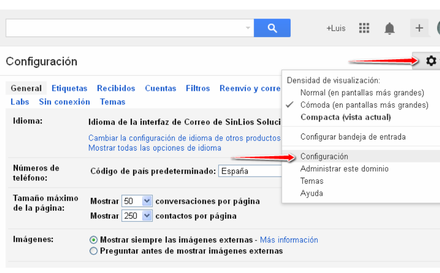 Haz clic en el ícono de engranaje en la esquina superior derecha de la pantalla y selecciona "Configuración" en el menú desplegable.