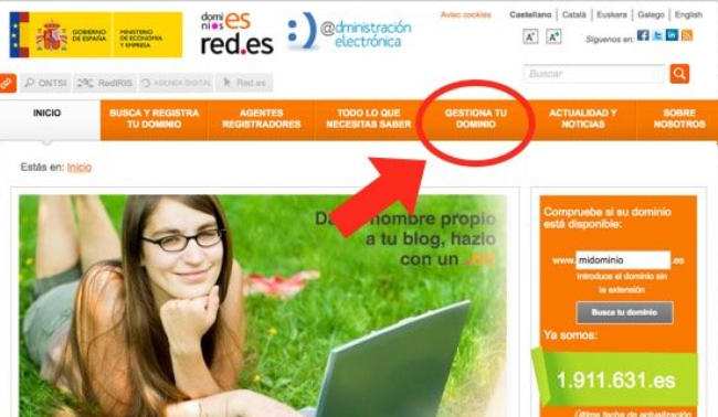 Así que lo primero que tienes que hacer es acceder a Dominios.es y hacer clic en Gestiona tu Dominio.