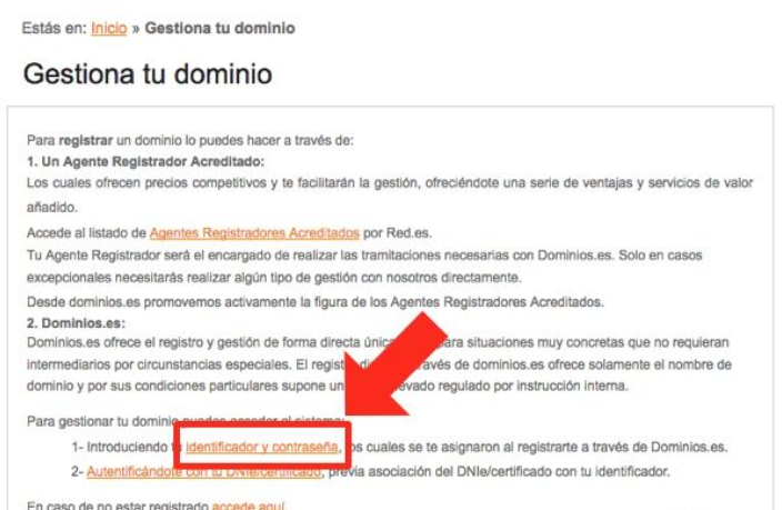 Acceder a «Gestiona Tu Dominio» en Dominios.es