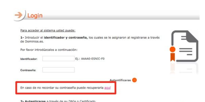 Después de cambiar la contraseña, el sistema nos llevará a la página de login, donde tenemos que poner el Identificador del Dominio y la contraseña que hayamos elegido.