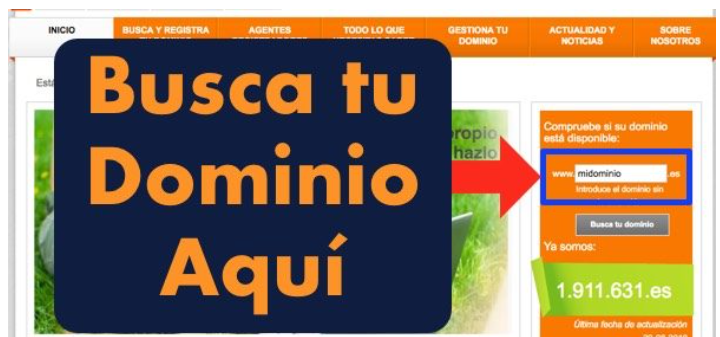 En el buscador de dominios que verás, tienes que poner tu dominio, no pongas la extensión, pues si te fijas, verás que ya está puesta y pulsar en Busca tu Dominio.
