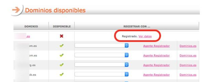 Como el dominio ya está registrado, es lo lógico, tienes que pulsar en Ver Datos.