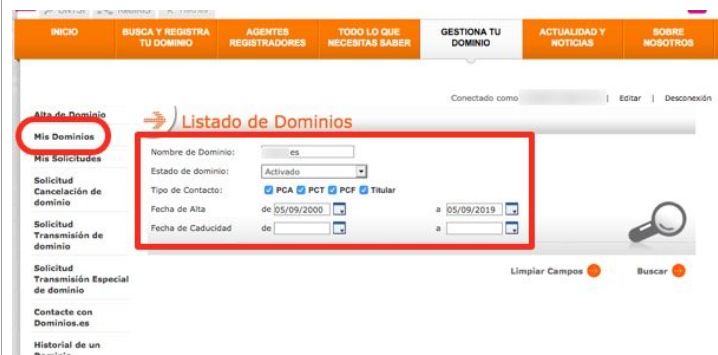 Bueno, al fin estamos dentro de Dominios.es ¡y sin tener que darnos de alta en su sistema!, lo cuál ya es bastante.